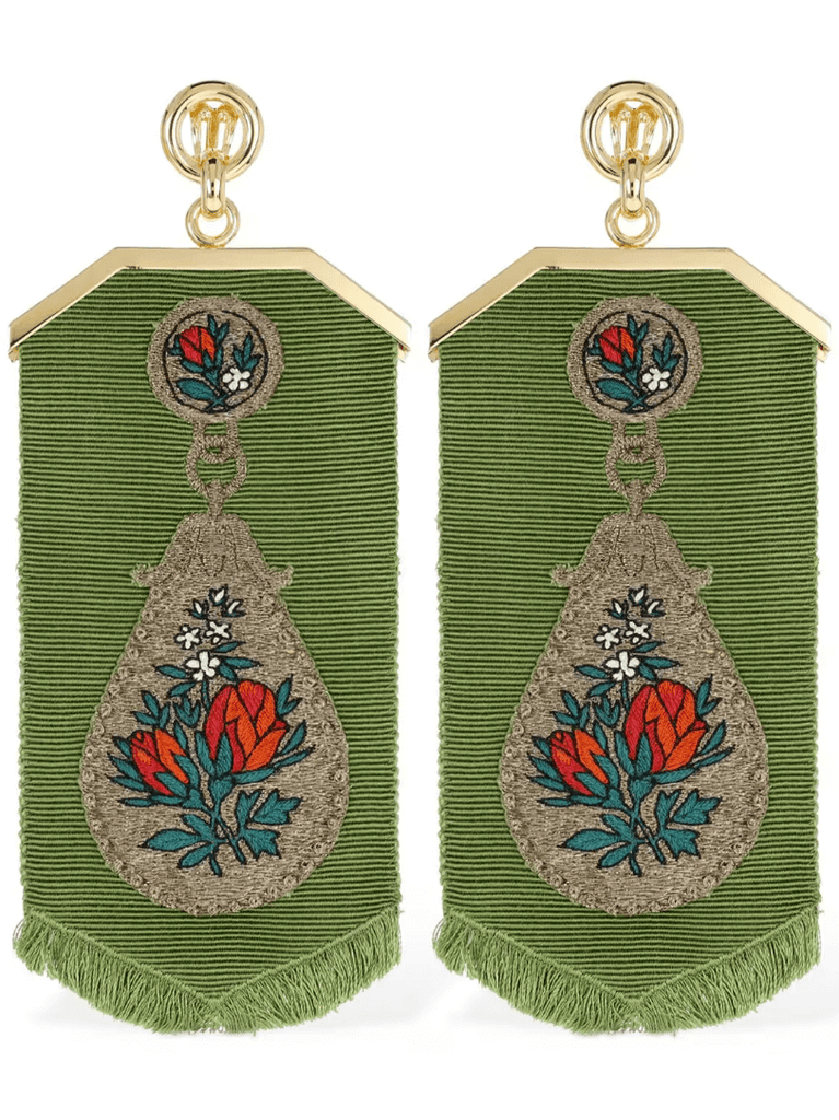 Embroidered flower clip-on earrings