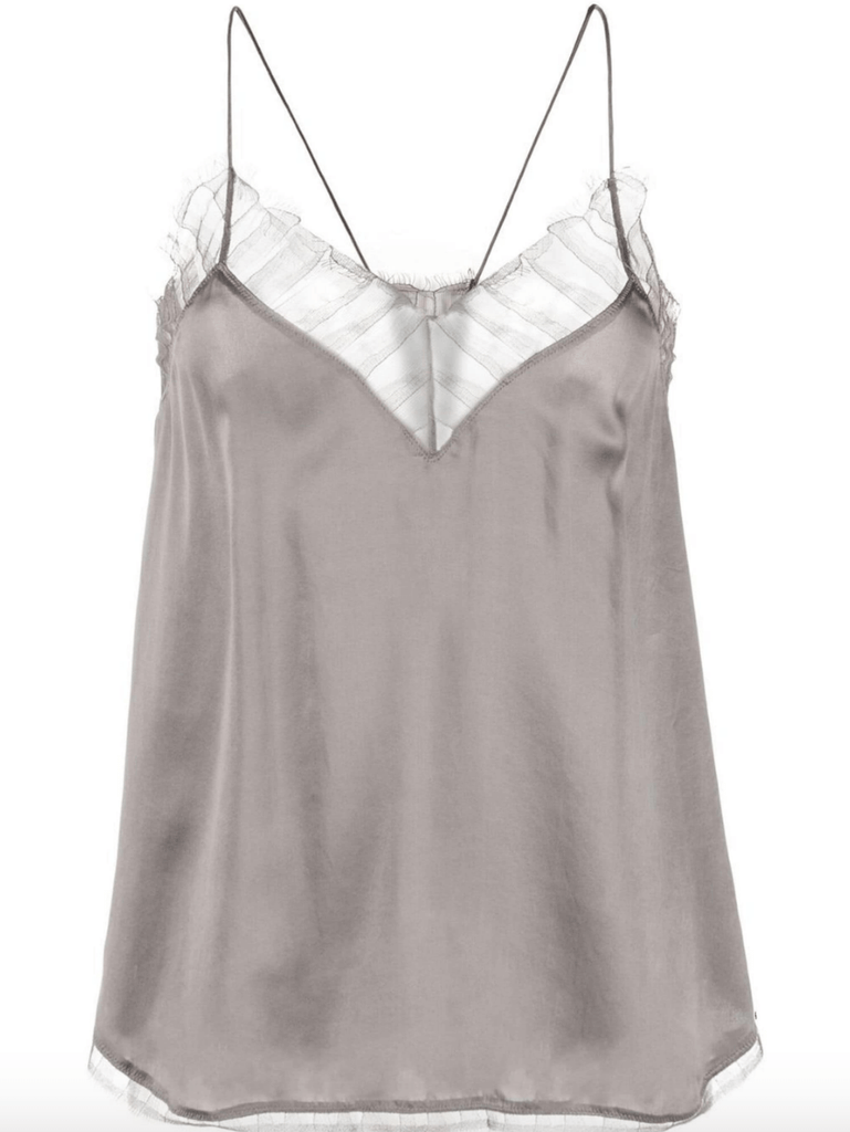 lace-trim cami silk top from IRO featuring grey, silk, lace trim and spaghetti straps.