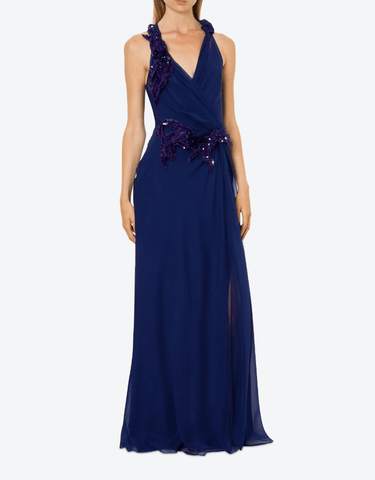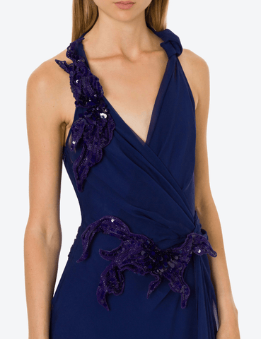 appliqué-detail silk maxi dress