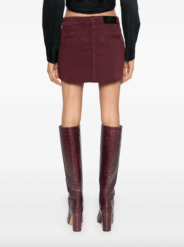 Burgundy denim mini skirt