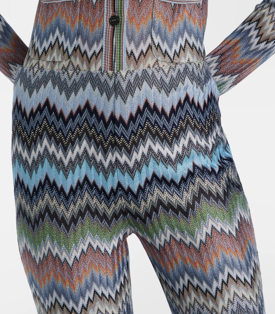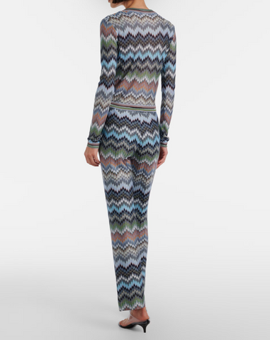 Snake-Pattern Chevron Viscose Flared Trousers